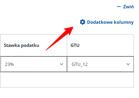 Czasami może okazać się konieczne dodanie również nowej kolumny w postaci sekcji "GTU" lub informacji o MPP - "Towar lub usługa z zał. 15". Tak też będzie w przykładzie niniejszej faktury, gdzie należy wybrać oznaczenie GTU_12 dla usług o tzw. charakterze niematerialnym. Z uwagi na brak podpowiedzi MF w zakresie kodów GTU w aplikacji, poniżej znajduje się szczegółowa ich lista.