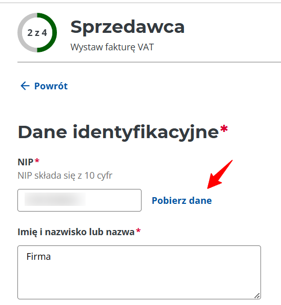 Etap 2) Uzupełnienie danych Sprzedawcy