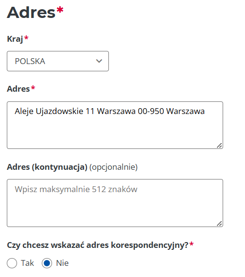 W takim wypadku zostaną pobrane z baz Ministerstwa również adresowe dane odbiorcy.